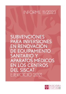 11/2023 Subvenciones para inversiones en renovación de equipamiento sanitario y aparatos médicos en los centros del SISCAT. Ejercicio 2021