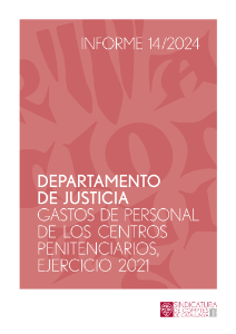 Departament de Justícia: despeses de personal dels centres penitenciaris, exercici 2021
